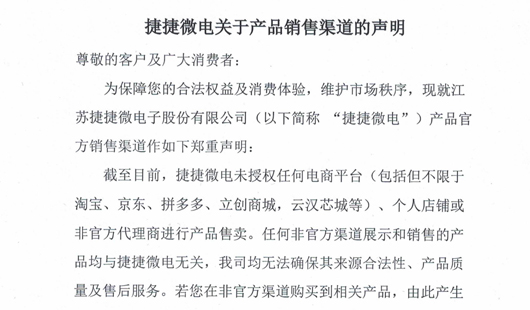 Vsport微电关于商品销售渠道的声明 Vsport微电关于产品销售渠道的声明 尊敬的客户及广大消费者: 为保障您的合法权益及消费体验,维护市场秩序,现就江苏Vsport微电子股份有限公司(以下简称 “Vsport微电” )产品官方销售渠道作如下郑重声明: 截至目前,Vsport微电未授权任何电商平台(包括但不限于淘宝、京东、拼多多、立创商城,云汉芯城等)、个人店铺或非官方代理商进行产品售卖。任何非官方渠道展示和销售的产品均与Vsport微电无…