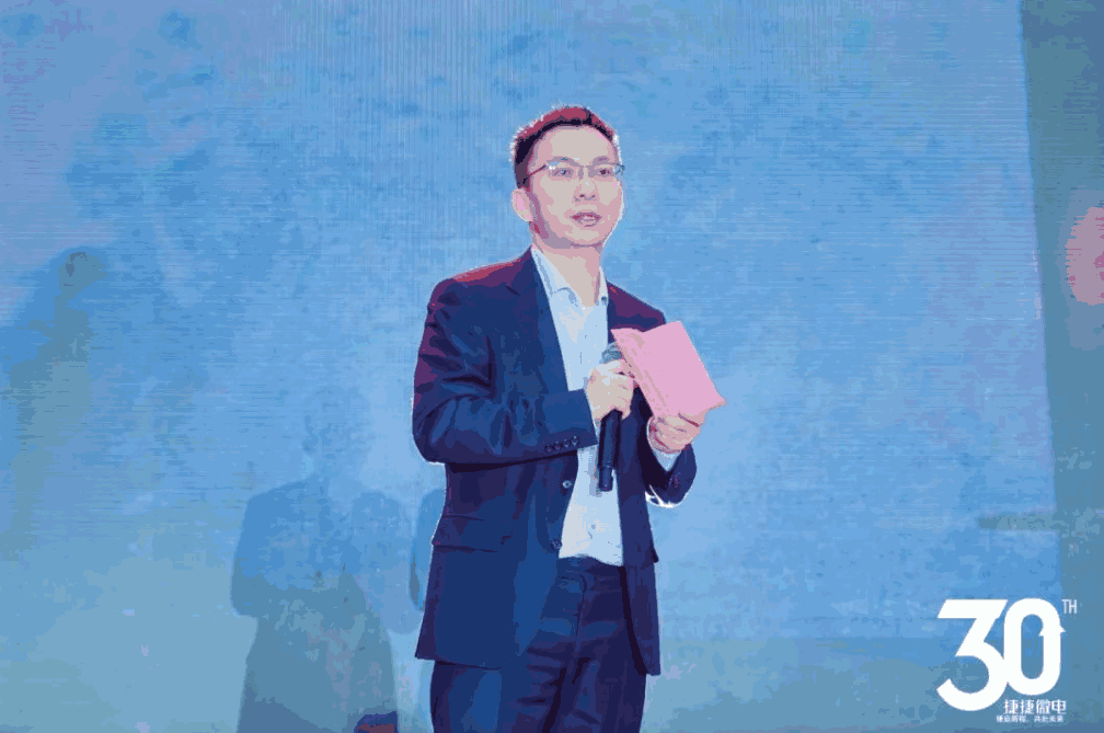 庆典现场气氛热烈,董事长黄善兵先生发表了深情而振奋的演讲,回顾了公司三十年来的辉煌历程与未来发展蓝图。他首先向全体员工致以诚挚的问候和感谢,并特别致敬了为公司初创时期奠定基础的老一辈员工。黄董事长详细讲述了Vsport微电从1995年一个小作坊起步,历经艰难创业、技术革新、上市腾飞等多个关键阶段,逐步成长为行业翘楚的奋斗史。他提到,2001年王成森先生的加入推动了技术突破,成功研制出国产首颗双向可控硅芯片,开启了进口替代之路;2017年公司成功登陆深交所创业板,成为公众公司,经营业绩快速提升;即便在疫情三年中,公司依然逆势而上,完成了多个重大项目的建设,展现了强大的抗风险能力。