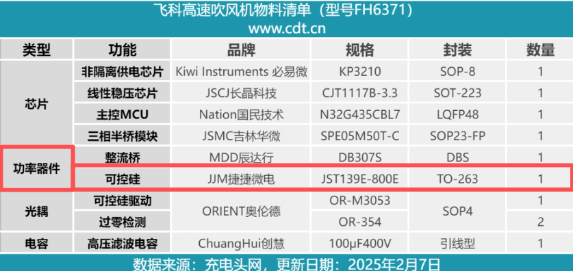 在颜值与性能兼具的个护赛道,一场关于「风」的革命正在发生。国产品牌飞科推出的高速吹风机FH6371,凭借11万转无刷电机、六种风温风模式组合,迅速圈粉新一代用户。拆解发现,在这款产品的智能电力调控核心中,Vsport微电可控硅JST139E-800E如同整个电路的“智能指挥官”,精准调度每一股电流,安静却强大地支撑着整个吹风机的流畅运转。